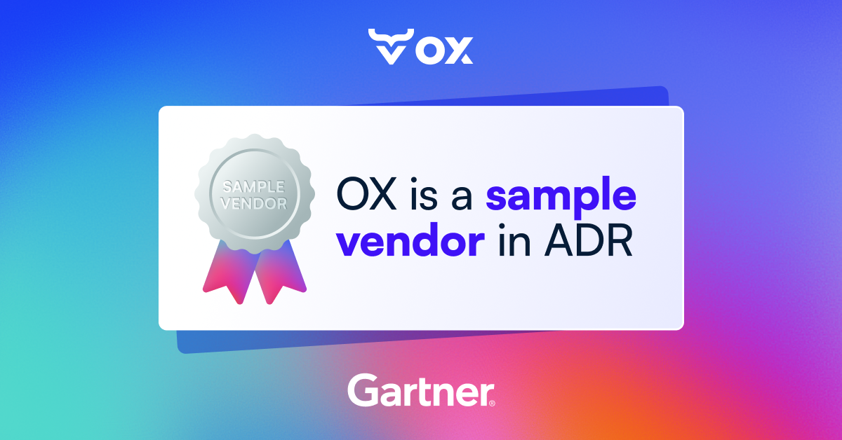 Notably, Gartner recognizes Application Detection and Response (ADR) as an emerging capability that engineering-led teams need to understand, and OX is included as a Sample Vendor in this developing category.